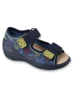 Niebieskie chłopięce kapcie Befado z nadrukiem