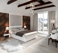 Łóżko kontynentalne PORTLAND podnoszony stelaż, 2 pojemniki na pościel - 140x200 - TRINITY - Biel