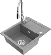 Mexen Cesar zlewozmywak granitowy 1-komorowy z ociekaczem i baterią kuchenną Duo, szary - 6514-71-671701-07-B