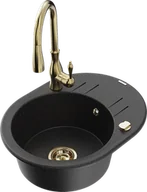 Mexen Enzo zlewozmywak granitowy 1-komorowy z ociekaczem i baterią kuchenną Carla, czarny/złoty metalik - 6506-75-670700-00