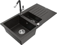 Mexen Pablo zlewozmywak granitowy 1-komorowy z ociekaczem i baterią kuchenną Duo, czarny/srebrny metalik - 6510-73-671701-07