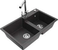 Mexen Tomas zlewozmywak granitowy 2-komorowy z baterią kuchenną Aster, szary - 6516-71-73450-07-B