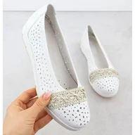 Baleriny Damskie Skórzane 41 RIEKER 41399 Ażurowe Granatowe na rzepy letnie