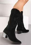 Czarne Botki Kowbojki na Słupku z Ozdobnymi Przeszyciami Starlina