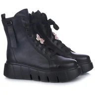 Czarne trzewiki botki trapery damskie NESSI 24704 skóra licowa modne r.36