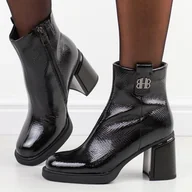Czarne lakierowane botki damskie na obcasie VINCEZA 10797 - Vinceza