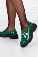 Zielone mokasyny skórzane damskie z łańcuchem lakierowane PRODUKT POLSKI Casu 09054-40