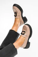 Beżowe mokasyny skórzane na platformie z łańcuchem PRODUKT POLSKI Casu 20127-41