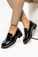 Czarne mokasyny lakierowane damskie ze sprzączką Casu D23WX3-BP-36