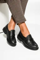 Czarne mokasyny skórzane damskie na bieżnikowanej platformie z ozdobą PRODUKT POLSKI Casu 2383-100-NO-37