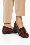 Wrzosowe mokasyny skórzane na platformie z łańcuchem PRODUKT POLSKI Casu 20127-39