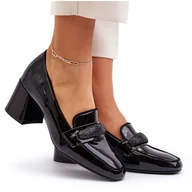 Czarne półbuty damskie, mokasyny na słupku Vinceza 629