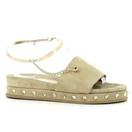 Beżowe klapki na koturnie z łańcuszkiem CARINII - Carinii
