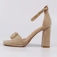 Beżowe sandały damskie na słupku z zakrytą piętą VINCEZA 20202 - Vinceza