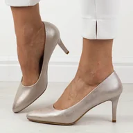 Beżowe czółenka damskie Sergio Leone na słupku skórzana wkładka PB409-CA