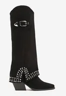 Czarne Kozaki Kowbojki na Stożkowym Obcasie Keralin