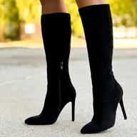Czarne zamszowe kozaki damskie na szpilce Vinceza 37119