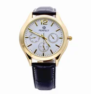 Zegarek męski kwarcowy biało-złoty klasyczny brązowy skórzany pasek C402