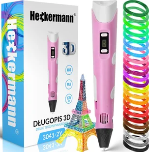 Długopis 3D Heckermann Zestaw Długopis drukarka 3D Heckermann 3041-2Y Różowy + 115m filamentu
