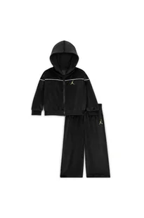 Ten dwuczęściowy zestaw ma fason inspirowany klasycznym dresem ijest wykonany zmiękkiego iwygodnego weluru. Przekonaj się, jak świetnie pasuje do butów Jordan. Bluza zkapturem ma obniżoną linię ramion zapewniającą swobodne dopasowanie, nowoczesne kimonowe rękawy izamek na całej długości, który ułatwia noszenie zT-shirtem lub koszulką bez rękawów. Tworzące ten zestaw spodnie mają wygodny, elastyczny pas iszerokie nogawki, które zapewniają swobodę ruchów podczas zabawy.