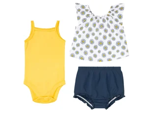 lupilu® Komplet niemowlęcy na lato (body, koszulka, spodenki), 3 elementy (Biały/żółty/granatowy, 62/68)