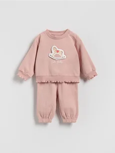 Reserved - Bawełniany komplet z naszywką - brudny róż