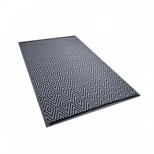 Praktyczna mata zewnętrzna z geometrycznym wzorem w kolorze czarnym W celu zapewnienia optymalnej jakości mata jest żakardowo tkana z wysokiej jakości tworzywa sztucznego. Prosty w pielęgnacji materiał zachowuje swój kształt i charakteryzuje się odpornością na warunki atmosferyczne oraz pleśń. Dzięki wysokiej jakości i trwałości jest to doskonały dodatek do mieszkania, który umiejętnie uwydatni każdą podłogę. Szczegóły: Kolor: Czarny, Biały. Materiał: Polipropylen.