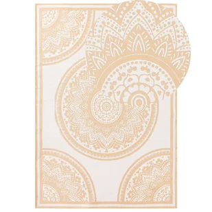 Dywan zewnętrzny z orientalnym wzorem. Odśwież swoją przestrzeń zewnętrzną dzięki temu dywanowi, wykonanemu z wysokiej jakości materiału syntetycznego. Dzięki temu produkt świetnie nadaje się do wszelkiego rodzaju tarasów, balkonów i ogrodów, dodając im uroku swoim orientalnym wzorem i ponadczasowymi, beżowymi odcieniami. Dywan jest również łatwy w czyszczeniu, więc nie musisz martwić się o plamy czy zabrudzenia, a w chłodniejszych miesiącach może być używany także w pomieszczeniach. Szczegóły: Typ produktu: