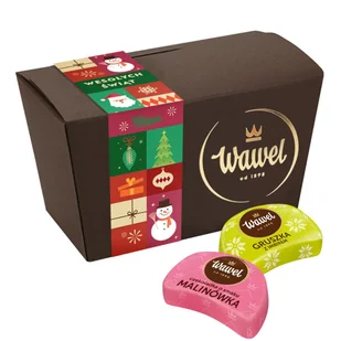 Czekoladki Malinówka Gruszka z imbirem Prezent Świąteczny Słodycze Wawel 300g Słodkie zimowe chwile w eleganckim wydaniu Podaruj bliskim wyjątkową przyjemność w bożonarodzeniowym kartoniku! W środku znajdziesz dwa wyjątkowe smaki: Malinówka - aksamitna ciemna czekolada z malinowym nadzieniem, inspirowanym znanym produktem oraz Gruszka z imbirem delikatna słodycz soczystej gruszki z subtelną, rozgrzewającą nutą imbiru, zatopiona w aromatycznej czekoladzie. To idealny sposób, by podarować sobie lub komuś świąteczną radość! Mix dwóch rozgrzewających smaków Eleganckie opakowanie - gotowe do wręczenia Sprawdzi się jako samodzielny prezent lub część większego zestawu Idealny upominek dla rodziny, przyjaciół i współpracowników Zakup bezpośrednio od producenta Skład zestawu: Czekoladka nadziewana Gruszka z imbirem 150 g Czekoladki nadziewane Malinówka 150 g Kuferek prezentowy Banderola „Wesołych Świąt"