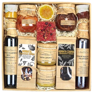 DUŻY KOSZ PREZENTOWY Herbata Miód NATURALNY Syrop Czekolada Przetwory