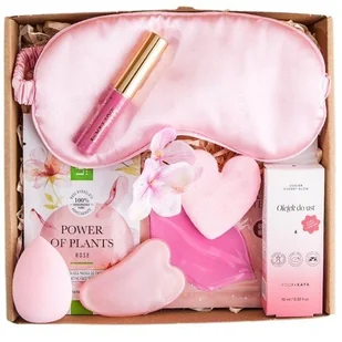 Satynowa maska na oczy w delikatnym różowym kolorze – pomaga zrelaksować się i odpocząć Nawilżający olejek do ust Your Kaya z efektem glow – dodaje blasku i pielęgnuje delikatną skórę ust Różana maseczka do twarzy na tkaninie marki Lirene – intensywnie nawilża i regeneruje Różowa maseczka do ust Pilaten – wygładza i odżywia usta Gąbeczka do makijażu w stylu Beauty Blender – do precyzyjnej aplikacji kosmetyków Puszek do makijażu w kształcie serca – miękki i wygodny w użyciu Błyszczyk do ust Eveline – nadaje subtelny połysk i nawilżenie Kamień gua sha w różowym kolorze – wspiera masaż twarzy i poprawia krążenie Ozdobny materiałowy kwiat – dodatek podkreślający elegancję zestawu Bilecik prezentowy: Dwustronny, z motywem kwiatowym na kraftowym tle Napis „Z najlepszymi życzeniami” na froncie Miejsce na podpis Tekst: By każdy dzień przynosił radość i spełnienie, by zdrowie i szczęście zawsze towarzyszyły, a marzenia, nawet te najskrytsze się spełniały. Dlaczego warto wybrać ten zestaw? Kompletny zestaw pielęgnacyjny – wszystko, co potrzebne do domowego rytuału Produkty wysokiej jakości, wybrane z myślą o skutecznej pielęgnacji Gotowy do wręczenia prezent – estetyczne i eleganckie opakowanie Uniwersalny upominek na różne okazje dla każdej kobiety Połączenie pielęgnacji i relaksu w jednym zestawie Wymiary opakowania: około 20 cm x 20 cm x 5 cm Pakowanie na prezent! Każdy zestaw jest starannie przygotowany do wręczenia – przewiązany elegancką wstążką i ozdobiony bilecikiem z pięknymi życzeniami.