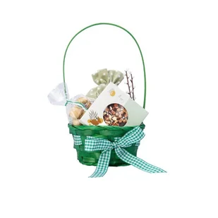 Filcowy kosz (*opakowanie do ponownego wykorzystania) z wypełnieniem i dekoracją kryjący: butelkę aromatycznego syropu do herbaty z pomarańczy z dodatkiem ru...