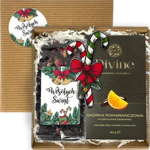 Mały Zestaw Świąteczny prezentowy Herbata Czekoladki na Mikołaja Święta box Ten wyjatkowy zestaw prezentowy to idealny wybór dla każdego, kto pragnie obdarować bliską osobę czymś niepowtarzalnym. Podaruj wyjątkowy, pełen emocji prezent, który pozostanie w pamięci na długo. W skład zestawu wchodzą: Herbata liściasta - 40g czarna z aromatycznymi dodatkami, z kolorową etykietą Skórka pomarańczowa w czekoladzie - 50g, które zaspokoją każde podniebienie Zawieszka na choinkę - z wysokiej jakości nadrukiem UV, wprowadzająca świąteczny klimat Na herbacie znajduje się kolorowa etykieta. Tekst i grafika na etykiecie jest stały i nie podlega modyfikacji.