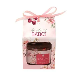 Delikatny napar różany w pięknym słoiczku z płatkami i pąkami róży to idealny prezent dla Babci. Aromatyczny smak i subtelny zapach róży pozwolą jej na chwilę wyjątkowego relaksu. Całość zapakowana w ozdobne pudełko z różową grafiką i dedykacją. Opis: skład: aromatyczny napar różany przygotowany na bazie czarnej wysokogatunkowej herbaty liściastej z prowincji Yunnan z dodatkiem pąków i płatków róży, pomarańczowej skórki i cudownego aromatu oraz uroczych, cukrowych serduszek umieszczony w szklanym słoiku i sprzedawany w zestawie z przepięknym dedykowanym pudełkiem dla Babci oraz wstążeczką do przewiązania pudełka - pudełko należy złożyć samodzielnie nadruk: grafika w odcieniach różu, dedykacja dla Babci na pudełku tak pięknie podany upominek dla Babci będzie wspaniałym wyborem, by podarować jej chwilę dla siebie napar działa pobudzająco, poprawia koncentrację i niweluje zmęczenie - idealny na urodziny, Dzień Babci, święta czy jako podziękowanie w dniu Chrztu i Komunii Wielkość: