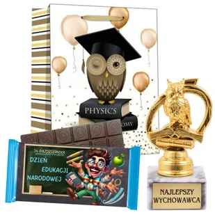 Prezent dla Wychowawcy na DZIEŃ NAUCZYCIELA Statuetka Czekolada Torebka