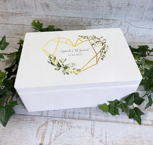 Pudełko- pakowny kufer duży Prezent na ślub. rocznicę , podziękowanie dla rodziców Drewniane pudełko z zewnątrz malowane na biało wieko z kolorowym nadrukiem...