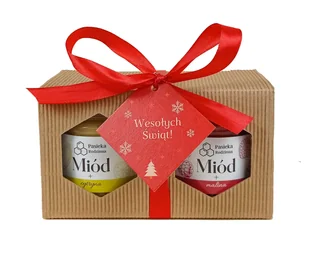 Świąteczny Zestaw prezentowy miód wielokwiatowy + miód malina 240g