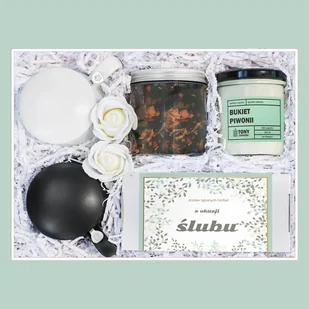 Szukasz gotowego, pięknie spakowanego prezentu na ślub? Big Box Ślubny będzie znakomitym rozwiązaniem! Aromatyczna herbata, świeca sojowa najwyższej jakości i dwa poręczne kubki to idealna kompozycja prezentowa, która z pewnością sprawi wiele radości Nowożeńcom.