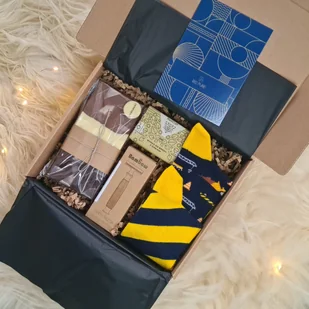 Niech to pudełko stanie się małym przytulnym komplementem, który zachwyci i przyniesie niesamowite emocje obdarowanej osobie. Jest to gotowe pudełko na prezent, w którym możesz dokonać zmian, która pasuje do Twojej okazji. Zawartość: Skarpety nie do pary z motywem Wielorazowa maszynka do golenia z bambusową rączką Belgijska Czekolada ręcznie robiona z polskiej manufaktury Naturalne mydło Druid Pudełko z dekoracją i wstążkami Kartka pocztowa - z miejscem na własną dedykację i życzenia Jeśli chcesz skomponować swój zestaw i stworzyć coś co będzie bardziej pasowało Twoim oczekiwaniom, chętnie pomożemy i zaprojektujemy GIF BOX specjalnie dla Ciebie. Masz jakieś pytania. . . chętnie pomożemy za pośrednictwem e-mail lub tel.