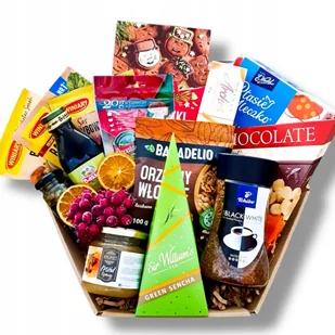 Kosz prezentowy - Świąteczna Spiżarnia Świąteczna Spiżarnia to wyjątkowy zestaw pełen smaków, które tworzą prawdziwą magię Świąt. Znajdziesz w nim wyselekcjonowane produkty delikatesowe - aromatyczną kawę i herbatę, naturalny miód, wykwintne słodycze, suszone owoce i grzyby oraz inne pyszności, które wypełnią dom zapachem i ciepłem. To doskonały prezent dla rodziny, przyjaciół lub współpracowników, który podkreśla świąteczny nastrój i zachęca do wspólnego smakowania wyjątkowych chwil. Kosz prezentowy zapakowany jest w folię (celofan) przewiązany okazałą kokardą dobraną kolorystycznie do zawartości. Jest gotowy do wręczenia.