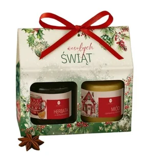 Świąteczny zestaw z aromatyczną herbatą owocową i miodem z pomarańczą i imbirem to wyjątkowy upominek, który rozgrzewa i wprowadza w magiczny nastrój. Eleganckie opakowanie z życzeniami "Wesołych Świąt" czyni go gotowym prezentem na każdą grudniową okazję. Opis: skład: szklany słoiczek wypełniony po brzegi herbatką świąteczną z owocami oraz miód świąteczny z pomarańczą i imbirem w słoiczku 220g sprzedawane w komplecie ze specjalnie przygotowanym przepięknym opakowaniem świątecznym z napisem Wesołych Świąt oraz wstążeczką - pudełko należy złożyć samodzielnie nadruk: świąteczna grafika w odcieniach zieleni i czerwieni gotowe upominki w pudełku będą idealne na prezenty, przekażą życzenia wesołych świąt Wielkość: herbata: ok. 50g miód: 220g wielkość opakowania po złożeniu:
