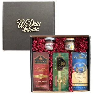 Zestaw prezentowy upominkowy herbata i miód pudełko ozdobne na imieniny