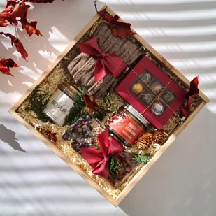 Niech to pudełko stanie się małym przytulnym komplementem, który zachwyci i przyniesie niesamowite emocje obdarowanej osobie. Jest to gotowe pudełko na prezent, w którym możesz dokonać zmian, która pasuje do Twojej okazji. Zawartość: Podkolanówki wełniane - kolor do wyboru Peeling do ciała - Świerk i cynamon - Belgijska czekolada deserowa z orzechami i owocami - ręcznie robiona Świeca sojowa - 150g BIO PURE - ręcznie robiona - zapach do wyboru Herbata rozkwitająca w bombonierce Duże pudełko z dekoracją i wstążkami - drewniane lub LUX do wyboru Kartka Świąteczna - z miejscem na własne Życzenia Istnieje możliwość zamówienia pudełka wiązanego personalizowanego z dowolnym tekstem (imię, dedykacja, lub krótka sentencja) - tekst należy wpisać w miejsce uwag podczas składania zamówienia. Kolory pudełek do wyboru CZARNY, BIAŁY, KRAFT, CZERWONY, GRANATOWY, BŁĘKITNY, JASNO RÓŻOWY - kolor również należy wpisać w pole uwag podczas składania zamówienia. Czas realizacji na pudełko personalizowane to około 10 dni.