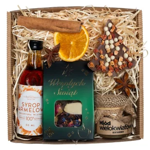 Zestaw Świąteczny z herbatą, miodem, czekoladą i syropem