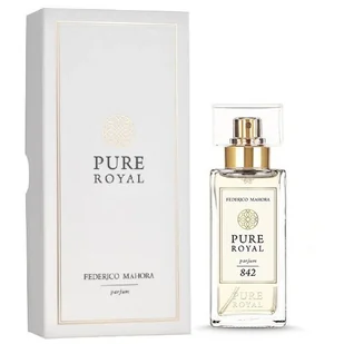 FM Federico Mahora Pure Royal 842 Perfumy damskie - 50ml Charakter: apetyczny, ciepły Nuty zapachowe: Głowy: brzoskwinia, bergamotka, rabarbar, imbir, gruszka, ananas, czarna porzeczka, kokos, jabłko, mandarynka Serca: jaśmin, frezja, róża, konwalia majowa, gardenia, nuty zielone, kwiat pomarańczy Bazy: wanilia, drzewo cedrowe, bób tonka, ambra, drzewo sandałowe, piżmo Typ: