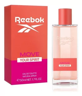 Zapachy Reebok dla niej, zostały zaprojektowane z kobiecej i beztroskiej perspektywy. Trzy różne kompozycje są uzupełnione kwiatowymi i owocowymi akcentami, przenosząc kobiety w krainę natchnienia i zmysłowości. Reebok Move Your Spirit składa się z kwiatowo-owocowych nut, które razem tworzą radosną i młodzieńczą kompozycję. Zapach został zbudowany na bazie z czerwonych owoców i różowego pieprzu. Kobieca, kremowa delikatność pochodzi z kwiatów peonii i frezji, a słodki, otulający akcent, zawdzięcza wanilii.