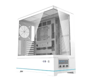 Podświetlana obudowa komputerowa bez wentylatorów. Wyposażona jest w cyfrowy system zarządzania temperaturą z czteropoziomową regulacją prędkości wentylatorów, który umożliwia dostosowanie chłodzenia do aktualnych potrzeb. Ekran na panelu przednim wyświetla temperatury CPU, GPU oraz wnętrza obudowy, umożliwiając pełną kontrolę nad chłodzeniem systemu. Uwaga: dla pełnego funkcjonowania wyświetlacza konieczne jest pobranie sterownika ze strony producenta.