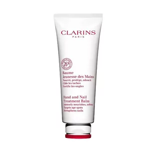 **CLARINS HAND & NAIL TREATMENT BALM NAWILŻAJĄCY BALSAM DO RĄK** Lekki **pielęgnujący krem do rąk** Clarins Hand & Nail Treatment Balm **odżywia i koi skórę**. Formuła tego kremu do rąk została oparta na wyjątkowych składnikach pochodzenia naturalnego, które zmiękczają skórę rąk i pomagają ją chronić przed szkodliwym działaniem czynników zewnętrznych. Aksamitny krem do rąkdziała zarówno na skórę rąk, jak i na skórki wokół paznokci. Dzięki intensywnej pielęgnacji kremem Hand & Nail Treatment Balm skóra wygląda młodziej i odzyskuje elastyczność. Częste mycie rąk, zimno, słońce, twarda woda oraz dezynfekcja rąk osłabiają ochronną barierę skóry, przez co dłonie stają się suche, podrażnione, popękane i spierzchnięte.