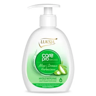 Luksja Care Pro Aloes i Drzewo Herbaciane - mydło w płynieLuksja Care Pro Aloes i Drzewo Herbaciane. Kremowe mydło o właściwościach antybakteryjnych, wzbogacone nawilżającymi substancjami aktywnymi i kwasem mlekowym. Skutecznie myje i chroni dłonie, pozostawiając uczucie miękkiej skóry. Formuła przyjazna dla wegan. Testowane dermatologicznie.
