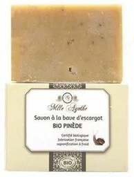 ORGANICZNE MYDŁO ZE ŚLUZEM ŚLIMAKA, SOSNA, TONIZUJĄCE, MLLE AGATHE Organiczne mydło drzewo sosnowe Bio Pinède to połączenie ręcznie zbieranego śluzu ślimaka z masłem Shea, oliwą z oliwek, olejem kokosowym, a także akcentem z nasion malin. Drewno cedrowe, jodła balsamiczna i olejek eteryczny z sosny szkockiej nadają właściwości antyseptyczne i lecznicze. Dostarcza skórze składników odżywczych niezbędnych do wytrzymania trudnej zimy. Najbardziej tonizujące z wykonanych metodą zmydlania na zimno mydeł Mlle Agate - połączenie ręcznie zbieranego śluzu ślimaka z kompleksem roślinnym, o wyjątkowych właściwościach: śluz ślimaka: